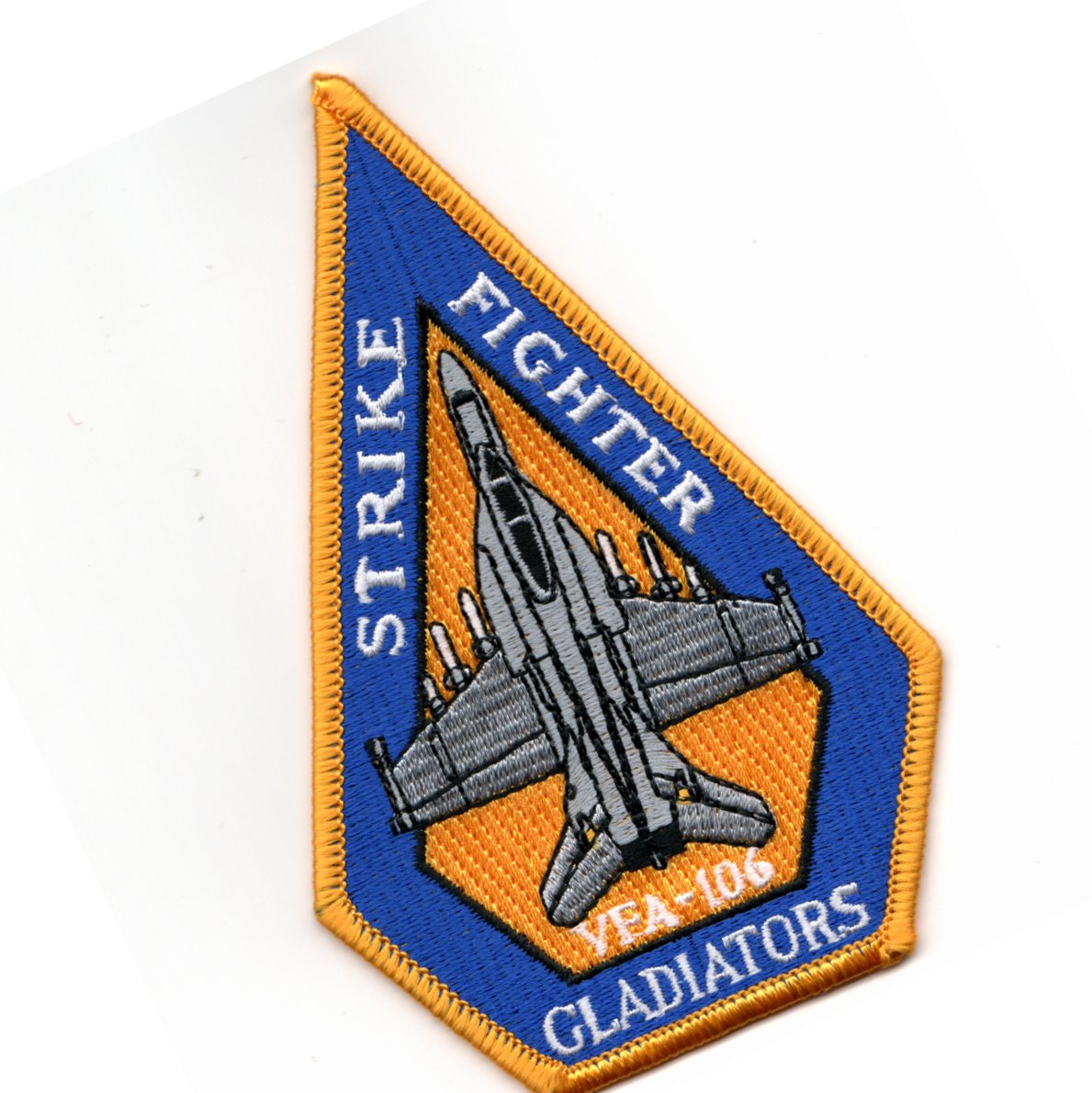 VFA-106 began operating on 27 April 1984 as the East Coast FRS (“RAG”) for the F/A-18A/B/C/D models at NAS Cecil Field, FL. They are now located at the Master Jet Base at NAS Oceana, VA where they train Navy, Marine, and foreign exchange pilots. This is the blue (outer)/yellow (inner) version of their aircraft “diamond” patch.