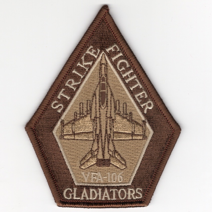 The “Gladiators” of VFA-106 were established in April 1984 as the East Coast RAG for the F/A-18 Hornet. They operate the A/B/C/D models of this aircraft and fly from NAS Cecil Field, FL. They are located at NAS Oceana, VA. They also fly the T-34C Mentor as range-clearance aircraft. This is the desert version of their coffin patch and does not come with velcro attached.