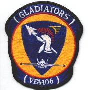The “Gladiators” of VFA-106 were established in April 1984 as the East Coast RAG for the F/A-18 Hornet. They operated the A/B/C/D models of this aircraft and flew from NAS Cecil Field, FL. They moved to NAS Oceana, VA in the 1998. They also fly the T-34C Mentor as range-clearance aircraft. This is the “large” version of their squadron patch.