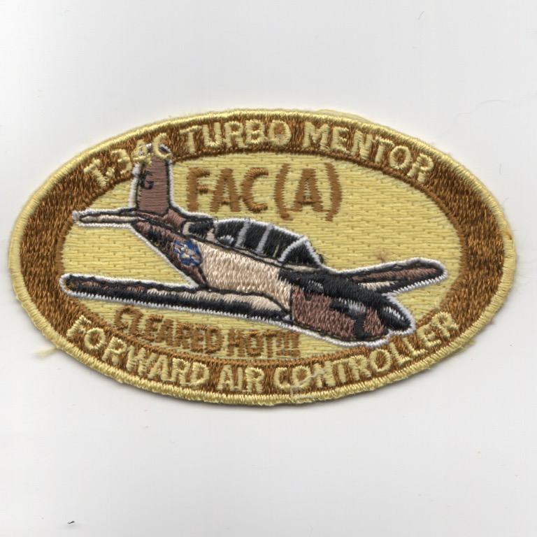 This is the “”””desert”””” version of the standard FAC(A) oval patch worn by the instructors and students of VFA-106 that fly the T-34C Turbo Mentor to provide FAC(A) services to the other students in the Air- to-Ground syllabus. This patch does not come with velcro attached.