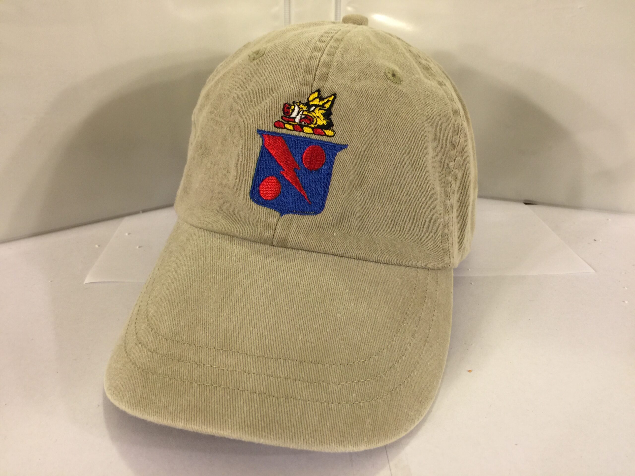 This is the form-fitting khaki ballcap with the squadron mascot (better known as “Ripper”) embroidered directly onto the front of the cap for the VFA-11 crews stationed at NAS Oceana, VA that fly the F-18 Hornet.