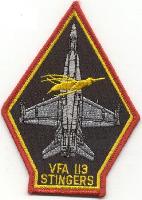 The “”””Stingers”””” were long-time flyers of the A-7 Corsair II before recieving the F/A-18C Hornets in October 1991. They are currently onboard the USS Carl Vinson (CVN-70) and attached to CVW-14. This is the black version of their aircraft patch.