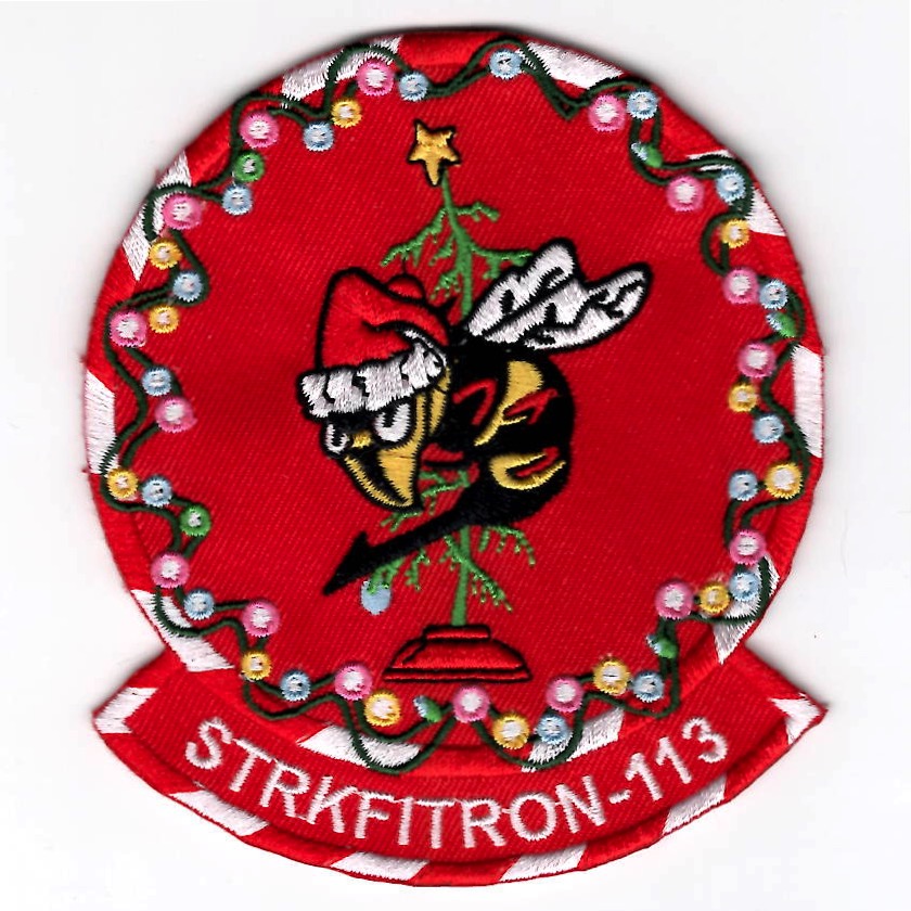 (Another AV8RSTUFF Creation): The “Stingers” were originally designated VF-113 in July 1948, then became VA-113 in March 1956, before final designation of VFA-113 on 25 March 1983. Flying A-7s for many years, VFA-113 received F/A-18Cs in October 1991. On 17 February 2016, the final F/A-18C departed VFA-113’s flightline and was transferred to NAS Oceana, VA. Since then, the squadron has transitioned to the F/A-18E Super Hornet. As the last Navy F/A-18C squadron on the west coast to transition to the Super Hornet, that last flight happened to be the last operational legacy Hornet flight ever for NAS Lemoore. This is the *CHRISTMAS* version of their squadron patch and does not come with velcro attached.