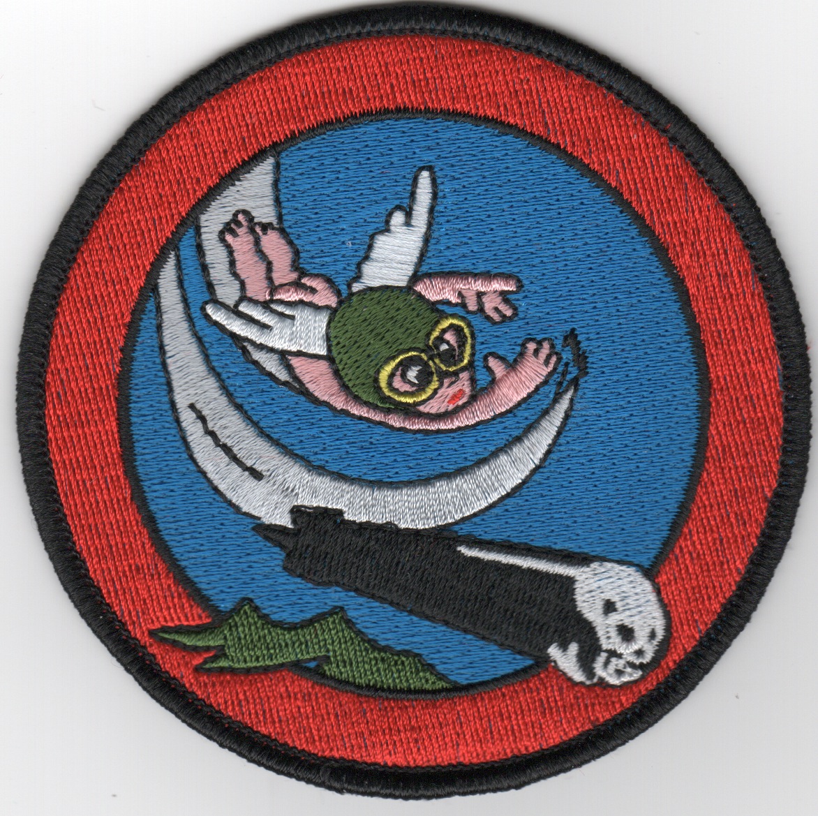 (From the Squadron supplier): This is the “”””heritage”””” patch created by VFA-115 to commemorate their lineage. It depicts a baby launching a bomb that has a skull for it’s seeker-head and is a reproduction of the original squadron logo from Torpedo Squadron Eleven (VT-11). VFA-115 traces their lineage back to October of 1942 when Carrier Air Group Eleven (CVG-11) formed. The original VT-11 logo was created by Walt Disney Studios…..cool! This patch does not come with velcro attached.