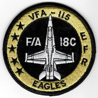 The ‘Eagles’ have a long history, beginning as Torpedo Squadron 11 in October 1942. They became VA-115 in July 1948, and for many years were nicknamed the “Arabs” until changed for obvious reasons. They also gave up their Intruders based out of NAS Whidbey Island in the early ’90s and transitioned to the F/A-18C Hornet flying out of NAS Lemoore, CA. This is the 5-Star version of their F/A-18C bullet patch that they wear on their right flightsuit sleeve. This is the color version of their bullet patch and does not come with velcro attached.