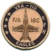 The ‘Eagles’ have a long history, beginning as Torpedo Squadron 11 in October 1942. They became VA-115 in July 1948, and for many years were nicknamed the “Arabs” until changed for obvious reasons. They also gave up their Intruders based out of NAS Whidbey Island in the early ’90s and transitioned to the F/A-18C Hornet flying out of NAS Lemoore, CA. This is the 4-Star version of their F/A-18C bullet patch that they wear on their right flightsuit sleeve. The stars represent the number of aircraft the unit has flown. Their first aircraft was the “TBF Avenger”, then they transitioned to A-1 skyraiders. During the 1960’s, they moved to A-6’s, then to the F/A-18C’s, which is their FOURTH aircraft, hence the FOUR stars. This is the desert version of their bullet patch and does not come with velcro attached.