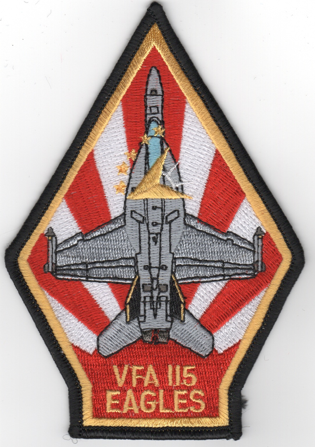 This is the “”””coffin”””” patch for the VFA-115 Eagles that shows the red setting sun (for Japan) in the background.