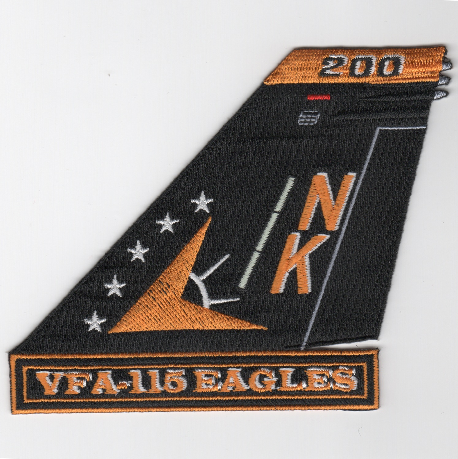 The ‘Eagles’ have a long history, beginning as Torpedo Squadron 11 in October 1942. They became VA-115 in July 1948, and for many years were nicknamed the ‘Arabs’ until changed for obvious reasons. They also gave up their Intruders based out of NAS Whidbey Island in the early ’90s and transitioned to the F/A-18C Hornet flying out of NAS Lemoore, CA. This is their version of one of their tailfins for VFA-115 ‘Eagles’ that has the historical “chevron” shown on it.