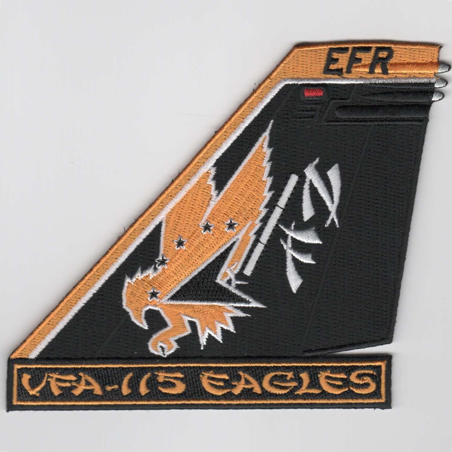 The ‘Eagles’ have a long history, beginning as Torpedo Squadron 11 in October 1942. They became VA-115 in July 1948, and for many years were nicknamed the ‘Arabs’ until changed for obvious reasons. They also gave up their Intruders based out of NAS Whidbey Island in the early ’90s and transitioned to the F/A-18C Hornet flying out of NAS Lemoore, CA. This is their version of one of their tailfins for VFA-115 ‘Eagles’ that has the “Eagle” shown on it.