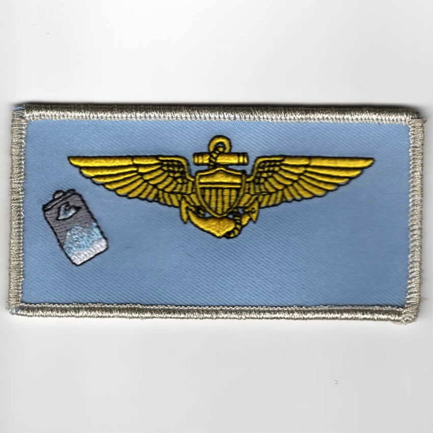 (Another AV8RSTUFF Creation): VFA-122 flies the F/A-18E/F out of NAS Lemoore, CA as the West Coast Replacement Air Group (RAG). In order to be qualified for the “FLEET” (operational squadrons), the pilots must “Air-to-Air” qualify by going through the ‘FIGHTER’ curriculum at NAS KEY WEST, FL. This is the class’ nametag that has Navy Pilot wings, but the logo is the “beer can” squadron patch. This patch DOES NOT come with velcro attached.