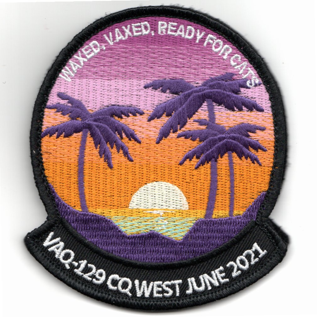(Another AV8RSTUFF Creation): VFA-122 flies the F/A-18C out of NAS Lemoore, CA as the West Coast Replacement Air Group (RAG). In order to be qualified for the “FLEET” (operational squadrons), the pilots must “Carrier Qualify” by landing multiple times (day and night) onboard an aircraft carrier (for this det, they were trapping aboard the USS Lincoln (CVN-72). This patch says “WAXED, VAXED, READY FOR CATS” (top) and CQ WEST JUNE 2021 (bottom). This patch DOES come with velcro attached.