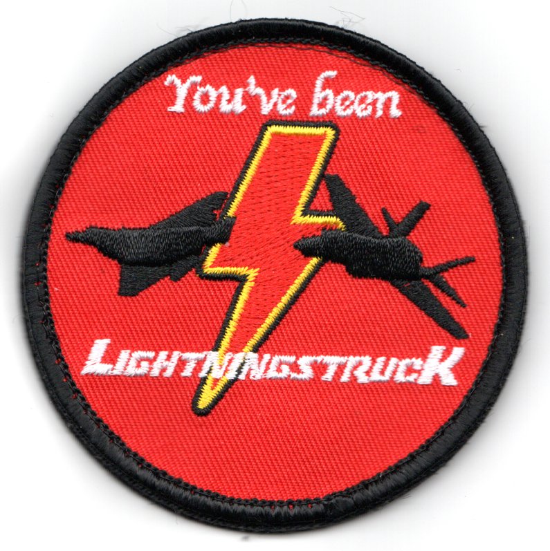 (Another AV8RSTUFF Creation): Strike Fighter Squadron 125 (VFA-125), also known as the “Rough Raiders”, is a US Navy Strike/Fighter squadron based at NAS Lemoore, CA. The “Rough Raiders” are a Fleet Replacement Squadron (FRS) flying and training new aviators in the F-35C Lightning II. This is the “aircraft bullet” patch that was created for their DECEMBER 2021 CQ DET and says “YOUVE BEEN LIGHTNINGSTRUCK”. This patch does come with velcro attached.