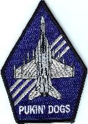The ‘Pukin Dogs’ of VFA-143 began existance as VF-871, a Reserve squadron activated for the Korean War in July 1950. They flew F-4J Phantoms until 1974 when they transitioned to the F-14A Tomcat, then transitioned to the F/A-18F in 2005. They made their first Tomcat cruise aboard the USS America (CV-66) in April 1976. This is their new black-bordered Hornet aircraft diamond patch.
