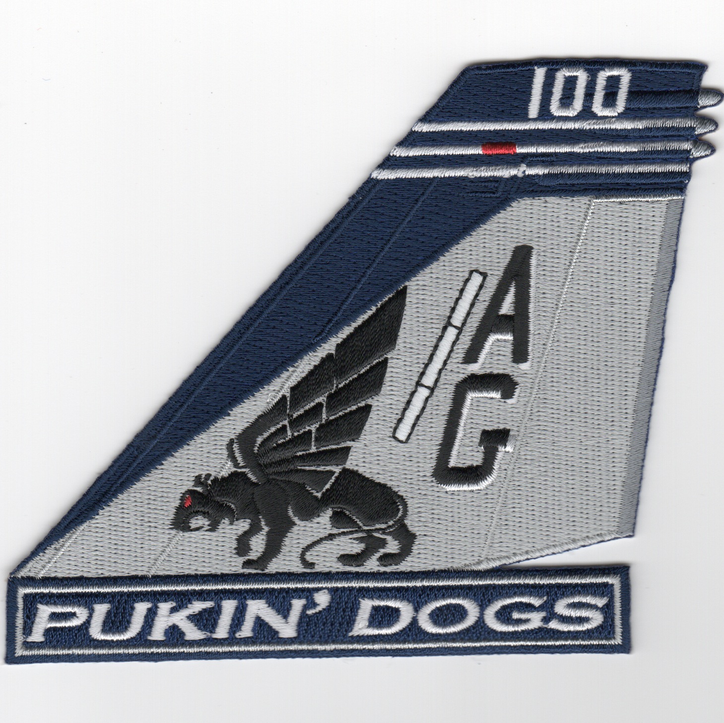 This is the gray/dark blue version of the F/A-18 tailfin created for the VFA-143 PUKIN’ DOGS. This patch does not come with velcro attached. This is the official colors of the squadron.