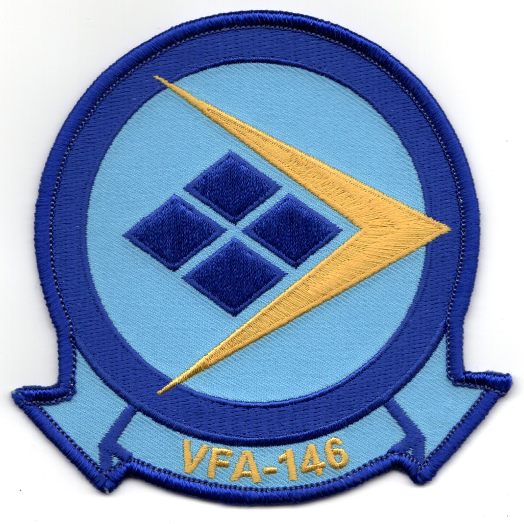 (Another AV8RSTUFF Creation): On 1 February 1956 Attack Squadron 146 (VA-146) became the Navy’s newest jet attack squadron at NAS Miramar. Since there were no fleet replacement squadrons at this time, VA-146 started with only a handful of aircraft and began an “in-house” training regime in various models of the F9F Cougar. Their first deployment was aboard USSÊHornetÊ(CV-12) in 1957. In September 1957, the squadron transitioned to the FJ-4B Fury, deploying twice aboard USSÊRangerÊ(CVA-61) prior to 1960. You can find more of their lineage online……this is their ‘NEW’ F-35C version of their squadron patch (note it is lighter blue than their F/A-18C squadron patch below) and does NOT have velcro attached.