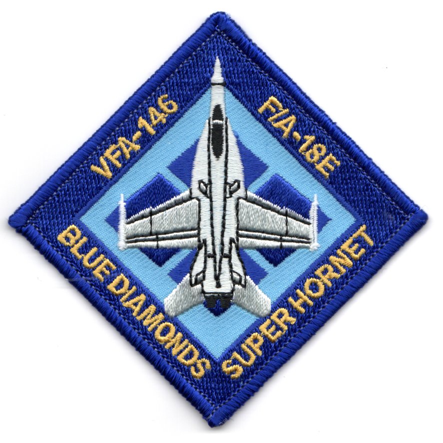 (Another AV8RSTUFF Creation): On 1 February 1956 Attack Squadron 146 (VA-146) became the Navy’s newest jet attack squadron at NAS Miramar. Since there were no fleet replacement squadrons at this time, VA-146 started with only a handful of aircraft and began an “in-house” training regime in various models of the F9F Cougar. Their first deployment was aboard USSÊHornetÊ(CV-12) in 1957. In September 1957, the squadron transitioned to the FJ-4B Fury, deploying twice aboard USSÊRangerÊ(CVA-61) prior to 1960. You can find more of their lineage online……this is the updated version of their ‘NEW’ Diamond aircraft patch they created for receiving their new F/A-18E ‘SUPERHORNET’ aircraft. This patch does NOT have velcro attached.
