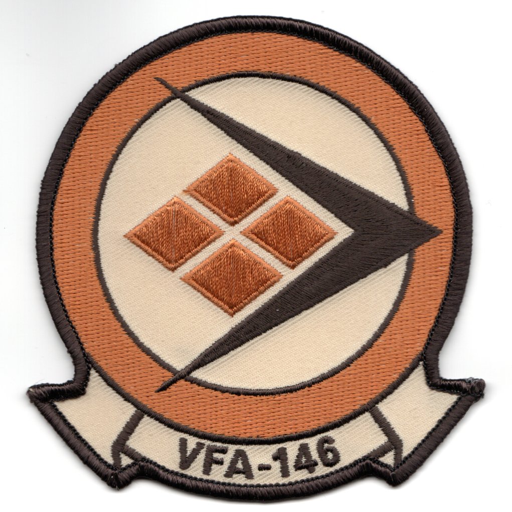 (Another AV8RSTUFF Creation): On 1 February 1956 Attack Squadron 146 (VA-146) became the Navy’s newest jet attack squadron at NAS Miramar. Since there were no fleet replacement squadrons at this time, VA-146 started with only a handful of aircraft and began an “in-house” training regime in various models of the F9F Cougar. Their first deployment was aboard USSÊHornetÊ(CV-12) in 1957. In September 1957, the squadron transitioned to the FJ-4B Fury, deploying twice aboard USSÊRangerÊ(CVA-61) prior to 1960. You can find more of their lineage online……this is the updated desert version of their ‘NEW’ squadron patch they created for receiving their new F/A-18E SUPERHORNET aircraft. This patch does NOT have velcro attached.