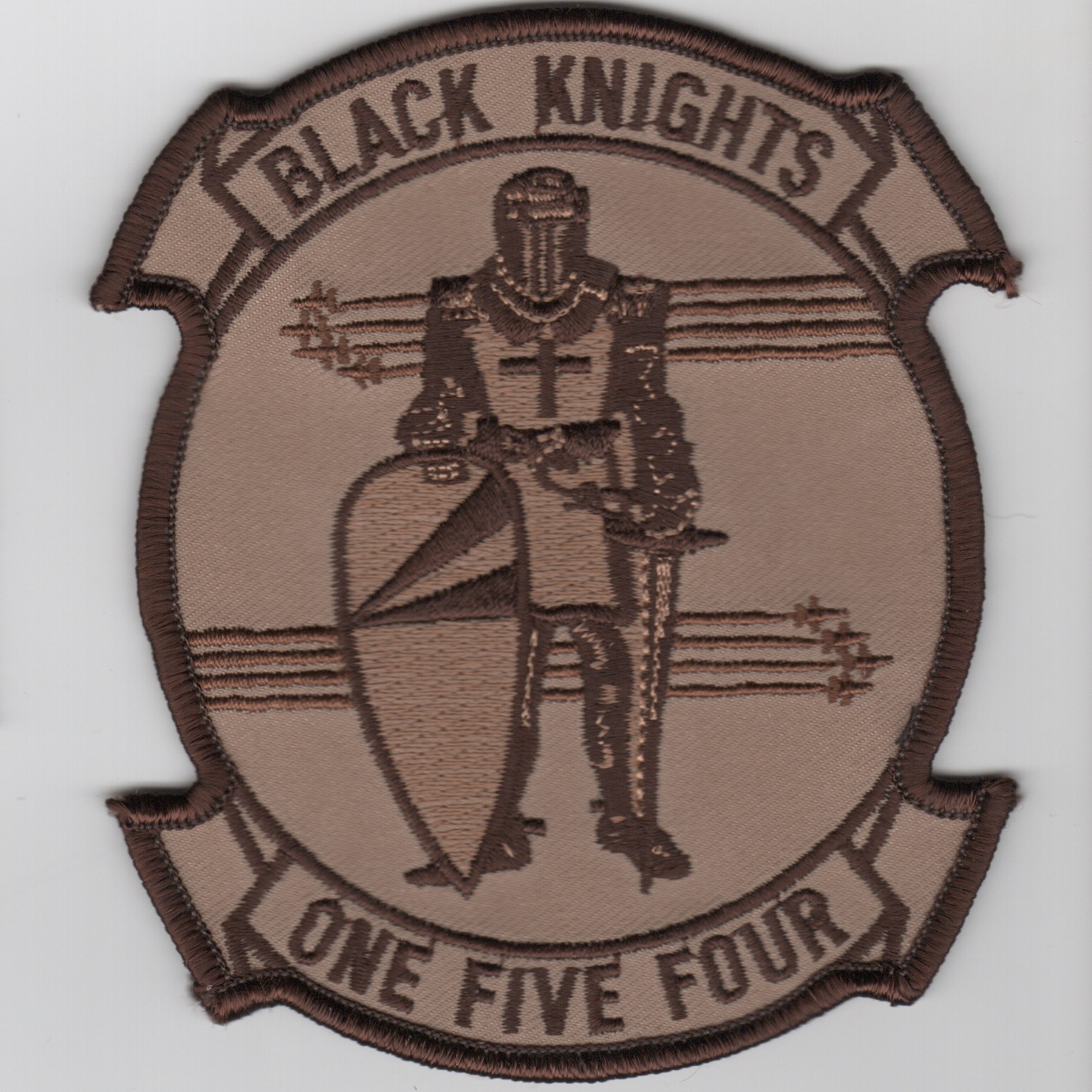The VFA-154 ‘Black Knights’ were established in February 1951, then designated as VF-154 in February 1953. They flew the F-4S Phantom before transitioning to the F-14A Tomcat and now to the F/A-18F Hornet. This is the desert version of their new squadron patch representative of their switch to the Hornet.