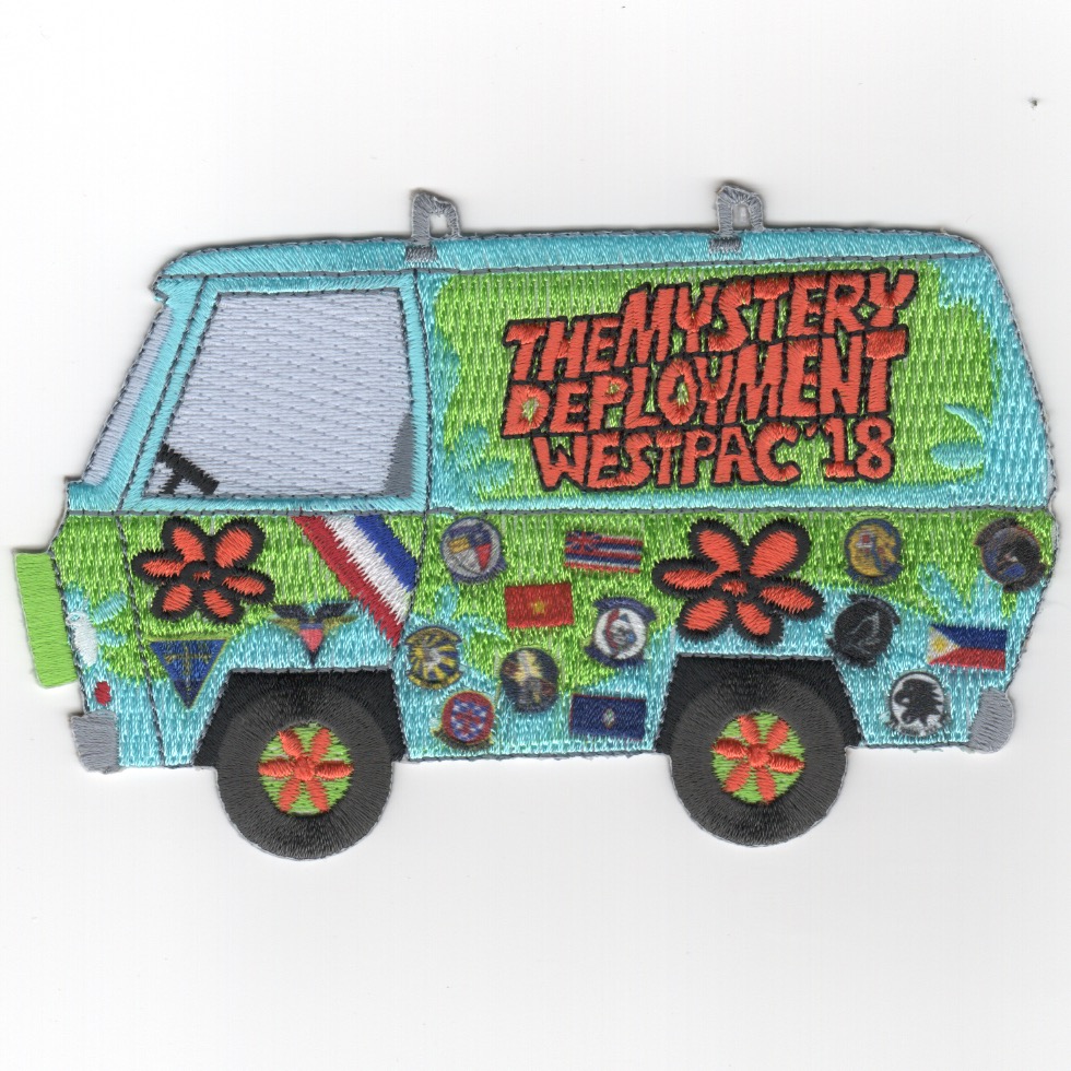 (Another AV8RSTUFF creation): THERE ARE TWO DIFFERENT ‘2018 MYSTERY MACHINE CRUISE PATCHES!!!! This is yet another of the 2018 cruise patches for VFA-2/CVN-72/CVW-2 created for their Cruise. It is made with the new “”””hybrid”””” technology which allows the greatest detail ever made on a “”””stitched”””” patch. Absolutely beautiful patch and another of their many cruise patches for this deployment! This is a ‘throwback’ to the Scooby-Doo ‘Mystery Machine’ and shows all the squadron logos on the side. Difference between this one and the one above is their is no one driving this one. This patch does not come with velcro attached.