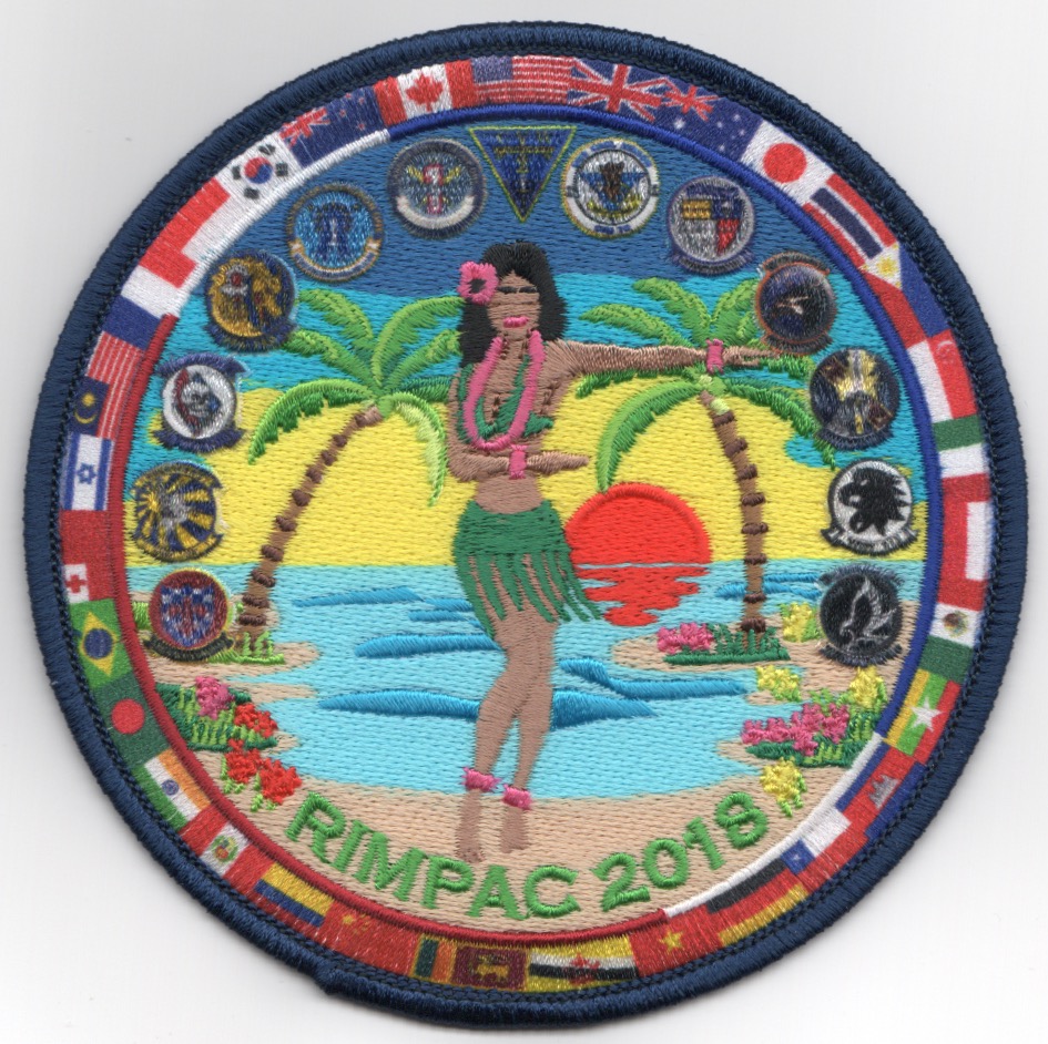 (Another AV8RSTUFF creation): This is yet another of the 2018 cruise patches for VFA-2/CVN-72/CVW-2 created for their Cruise. It is made with the new “”””hybrid”””” technology which allows the greatest detail ever made on a “”””stitched”””” patch. Absolutely beautiful patch and another of their many cruise patches for this deployment! This one shows a “”””Hula Girl”””” (clothed) dancing on a tropical island with all the squadron logos and country flags along the border. It says “”””RIMPAC 2018″””” and does not come with velcro attached.