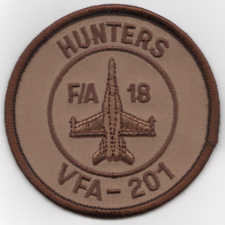 This is the desert version of the ‘Hunters’ aircraft ‘bullet’ patch. The ‘Hunters’ of VF-201 were one of two Naval Air Reserve squadrons based at NAS Dallas, then NAS Ft. Worth. They flew the F-14A models, but transitioned to the F/A-18 Hornet in the mid-90s.