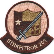 This is the desert version of the ‘Hunters’ squadron patch. The ‘Hunters’ of VF-201 were one of two Naval Air Reserve squadrons based at NAS Dallas, then NAS Ft. Worth. They flew the F-14A models, but transitioned to the F/A-18 Hornet in the mid-90s.