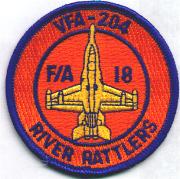 The ‘River Rattlers’ of VFA-204 were established in July 1970 at Cecil Field, FL as the Naval Air Reserve A-7 Corsair squadron. The now operate the F/A-18A Hornet out of NAS New Orleans, LA. This is the color version of their current aircraft bullet patch and does not come with velcro attached.