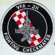 This is the round version of the aircraft bullet patchwith the diagonal red/white-checkered stripe for the VFA-211 “Checkmates” that now fly the F/A-18F Hornet out of NAS Oceana, VA. This patch does not come with velcro attached.