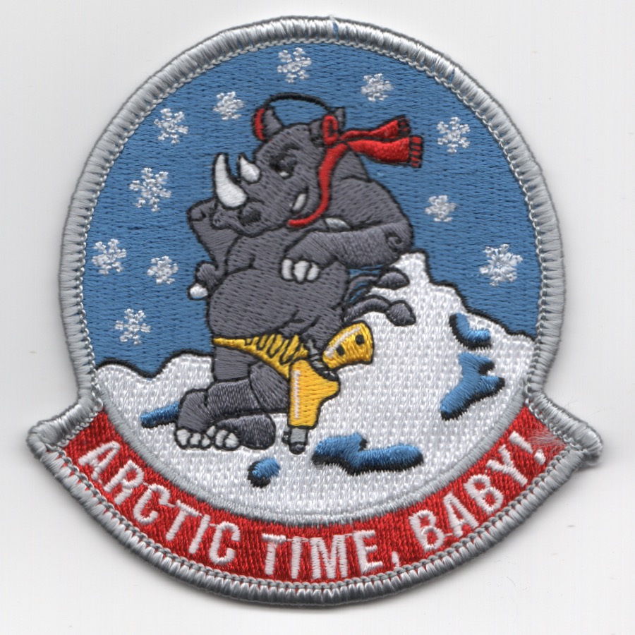 (Obtained from their supplier): Strike Fighter Squadron 211 (VFA-211), nicknamed the “Fighting Checkmates”, is an aviation unit of the United States Navy established in 1945. The squadron is based at Naval Air Station Oceana and is equipped with the F/A-18F Super Hornet. Three U.S. Navy squadrons have been designated VF-211. The first was established in 1948 and disestablished in 1949. The second VF-211 was established in 1955 and later redesignated VF-24 in 1959. The third VF-211 was established as VB-74 in 1945, eventually becoming VFA-211. This is their ‘Arctic Felix’ patch stolen from the F-14 Days when operating in extremely cold areas (North Atlantic, etc) It depicts the Rhino (instead of Felix the Cat) leaning on an iceberg! This patch does not have velcro.