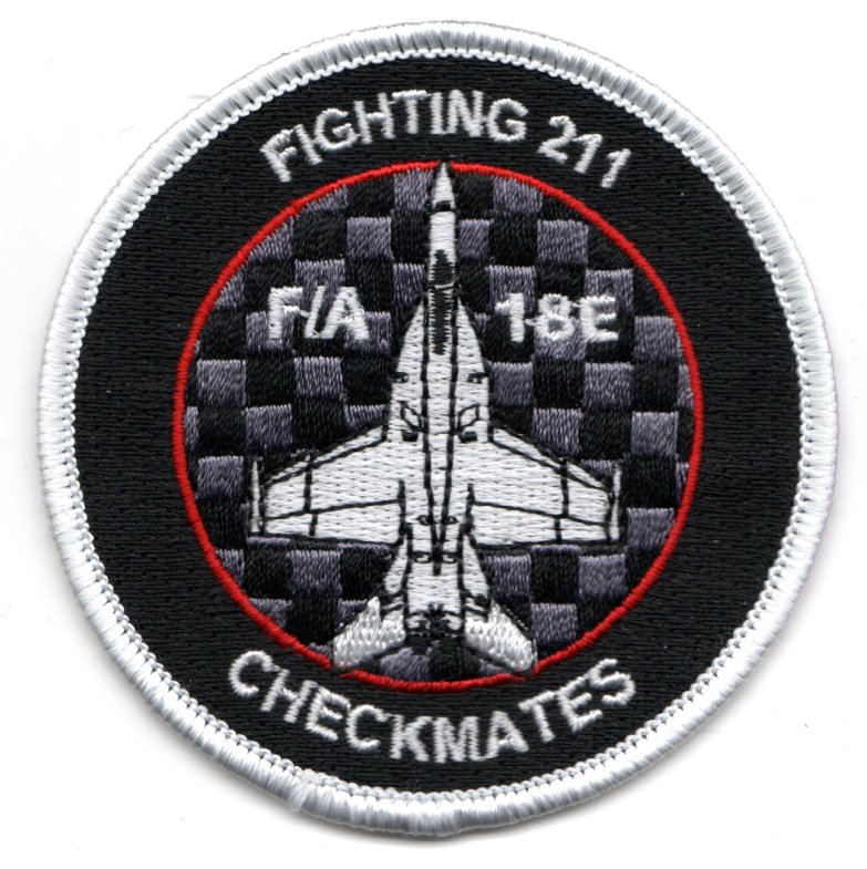 This is the gray-checkerboard version of the F/A-18E aircraft patch for the VFA-211 “Checkmates” that now fly that aircraft out of NAS Oceana, VA. This patch does not come with velcro attached.