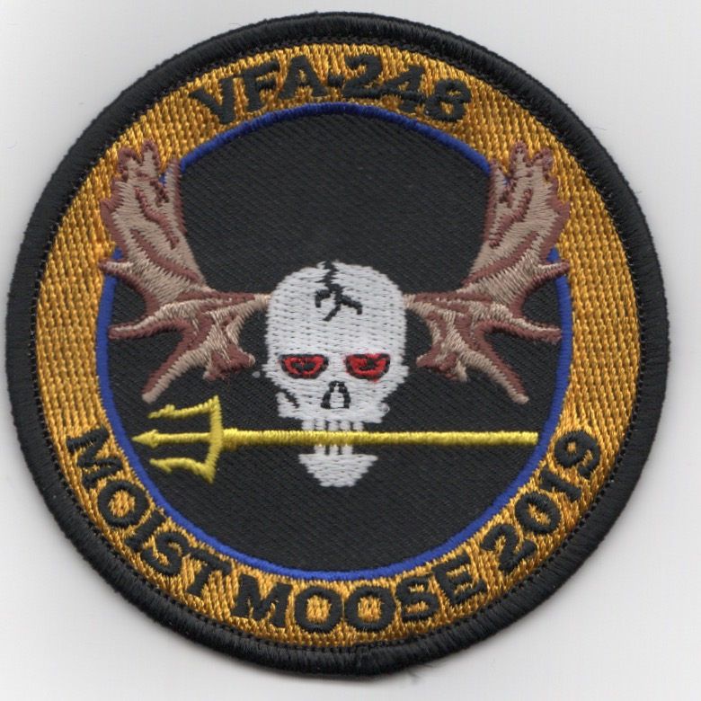 (Another AV8RSTUFF Creation): During the 2017-2018 PACOM RIMPAC cruise, the Airwing consisted of VFA-97 and VFA-151. During the deployment, they flew each other’s aircraft, worked side-by-side with each other, and were “sister” squadrons to each other. They created this new aircraft bullet patch, with the designator the sum of their two squadrons ‘numbers’. This patch does NOT come with velcro attached.
