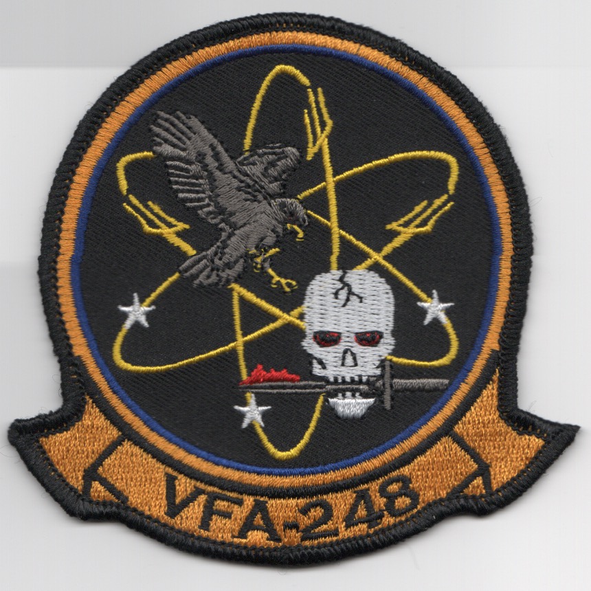 (Another AV8RSTUFF Creation): During the 2017-2018 PACOM RIMPAC cruise, the Airwing consisted of VFA-97 and VFA-151. During the deployment, they flew each other’s aircraft, worked side-by-side with each other, and were “sister” squadrons to each other. They created this new squadron patch, with the designator the sum of their two squadrons ‘numbers’. This patch DOES come with velcro attached.