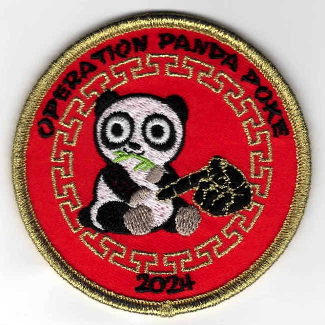 (Another AV8RSTUFF Creation): This is the patch created by the FOTF for their participation in Operation PANDA POKE in 2024. It shows the “”””PANDA BEAR”””” in the center getting “”””poked”””” in the belly by the FOTF “”””Finger”””” like the Pillsbury Doughboy (old commercial). This patch does not have velcro attached.