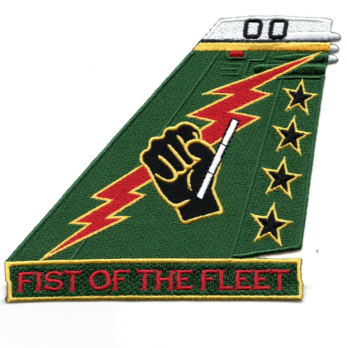 (Another AV8RSTUFF Creation): This is the GREEN version with *BLOCK LETTERS* at the bottom of the tailfin for VFA-25 that says ‘FIST OF THE FLEET’. It depicts the “”””FIST”””” holding a lightning bolt and does not come with velcro attached.
