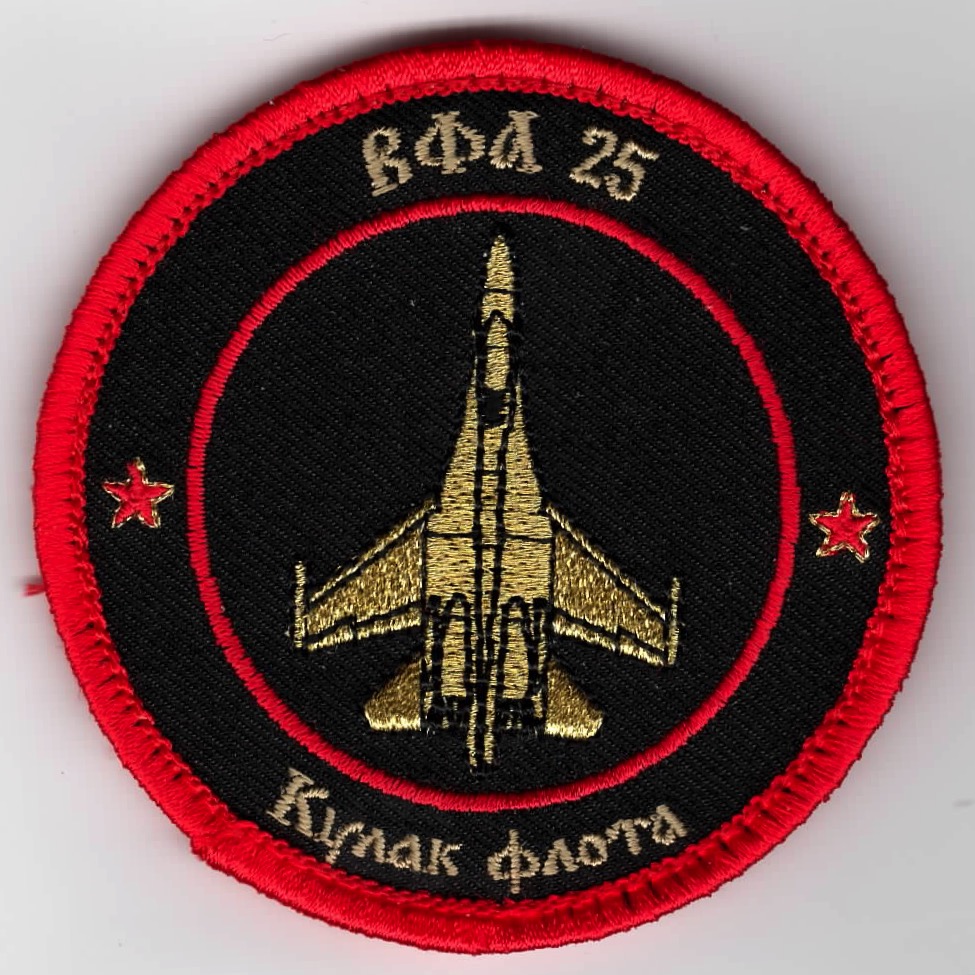 For the historical info on VFA-25, see above. This is the “RED AIR” version of the shoulder bullet patch worn by the aviators when they “play” that role. This patch says “BOA-25” along the top, has the “GOLD” paint scheme on the aircraft, and DOES have velcro attached.