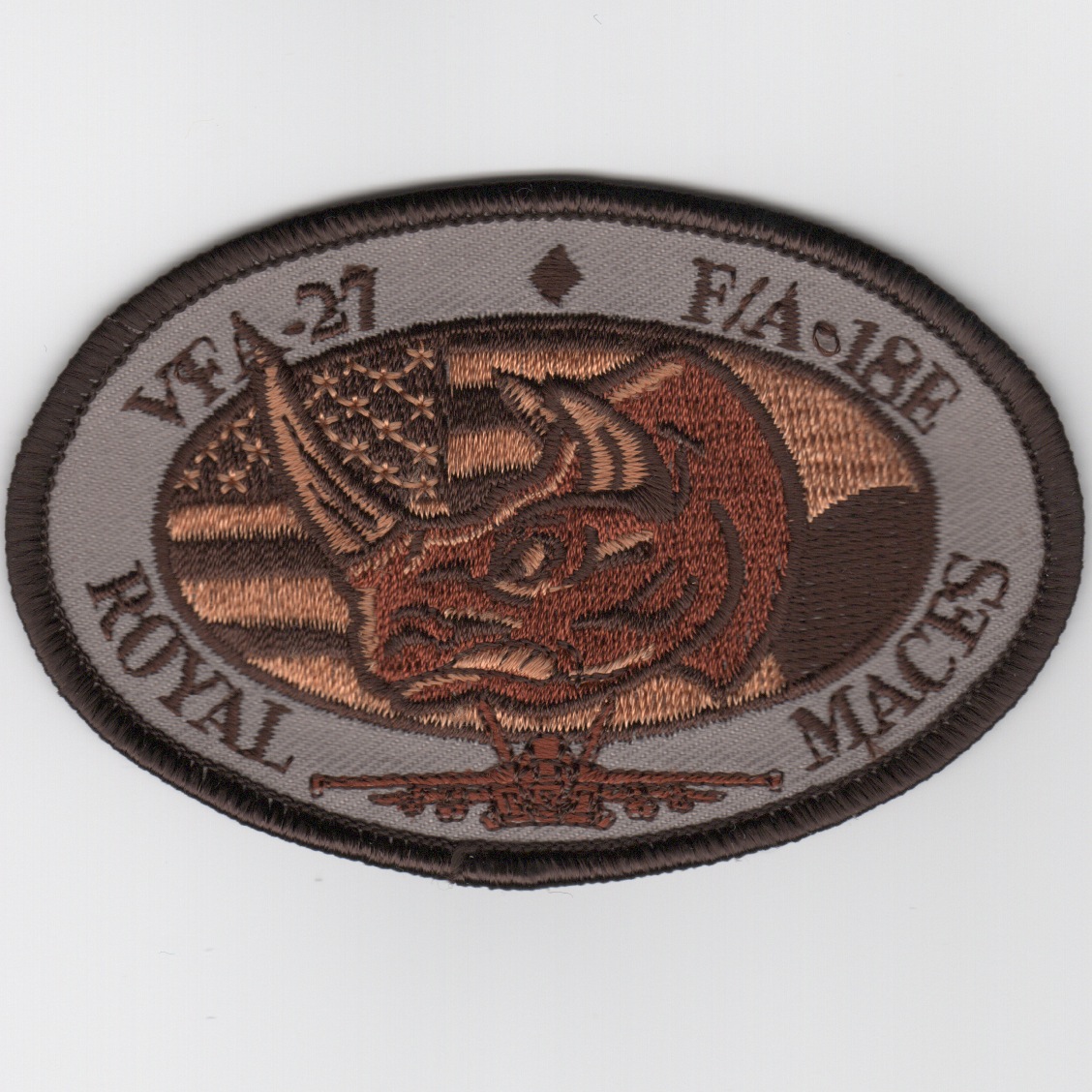 The ‘ROYAL MACES’ of NAS Lemoore, CA fly the F/A-18E/F hornet. This is the desert version of their oval aircraft patch that is worn on the right shoulder of the flight suit.