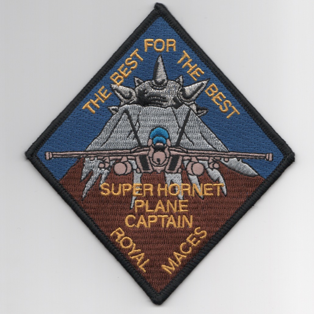 The ‘ROYAL MACES’ of NAS Lemoore, CA fly the F/A-18C hornet. This is their Plane Captain patch worn by those that prepare, repair and care for the jets that are abused off the flight decks of aircraft carriers! This has the “desert” version of the aircraft and this patch does not come with velcro attached. Picked these up from one of my RRVA buds that was attending Tailhook 2018!