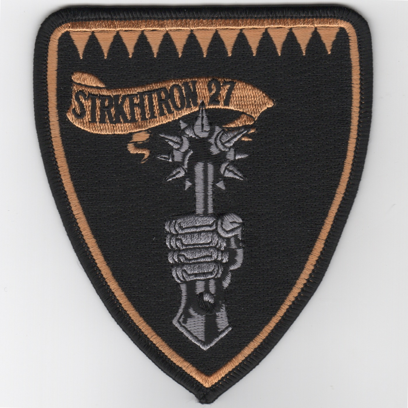 VFA-27 Squadron Shield Patch (Blk-Ylw/SILVER Hand-Mace)