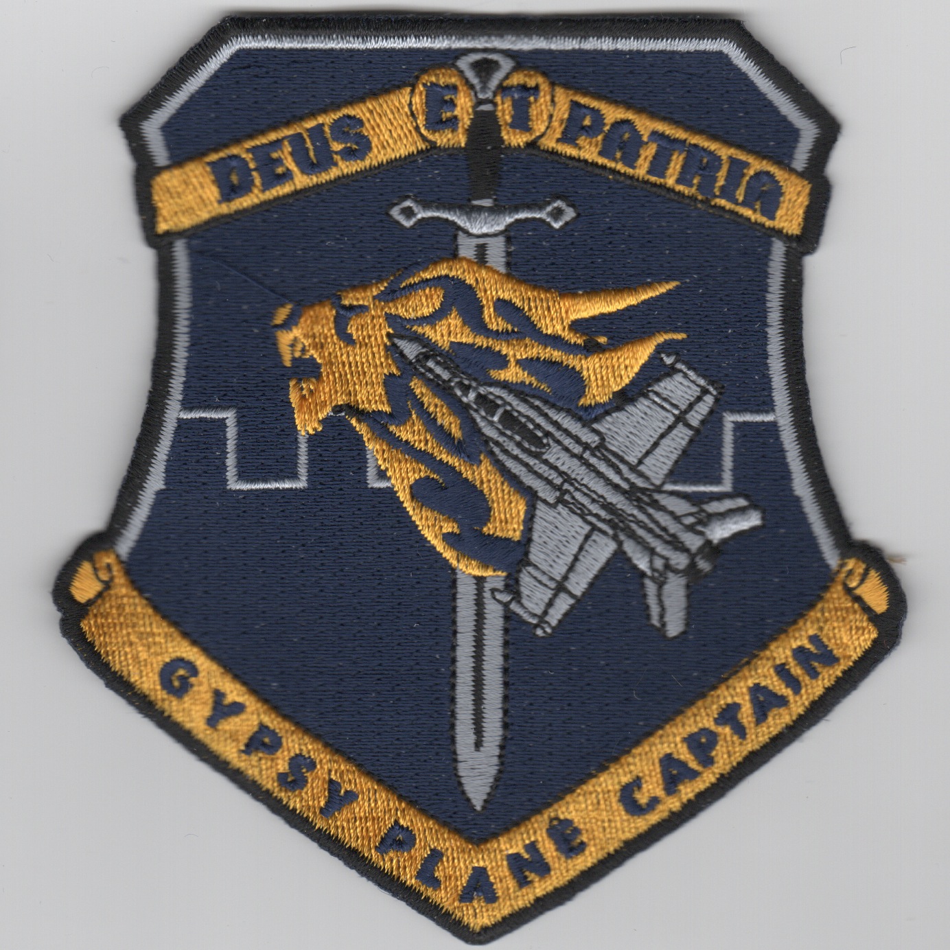 This is one of the plane captain patches for the maintainers of VFA-32. It is the shield-shaped one showing the Hornet planform.