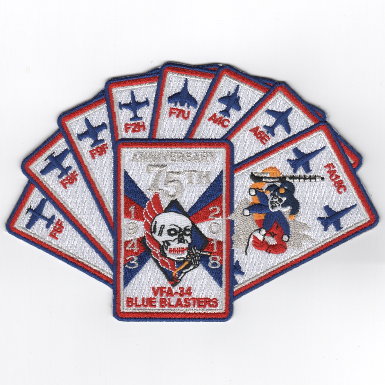 Another AV8RSTUFF creation for the VFA-34 “”””Blue Blasters””””. This is the 6.5″””” (wide) “”””Playing Card”””” version of their 75th Anniversary patch depicting their heritage aircraft. Absolutely GORGEOUS patch!! (No velcro).