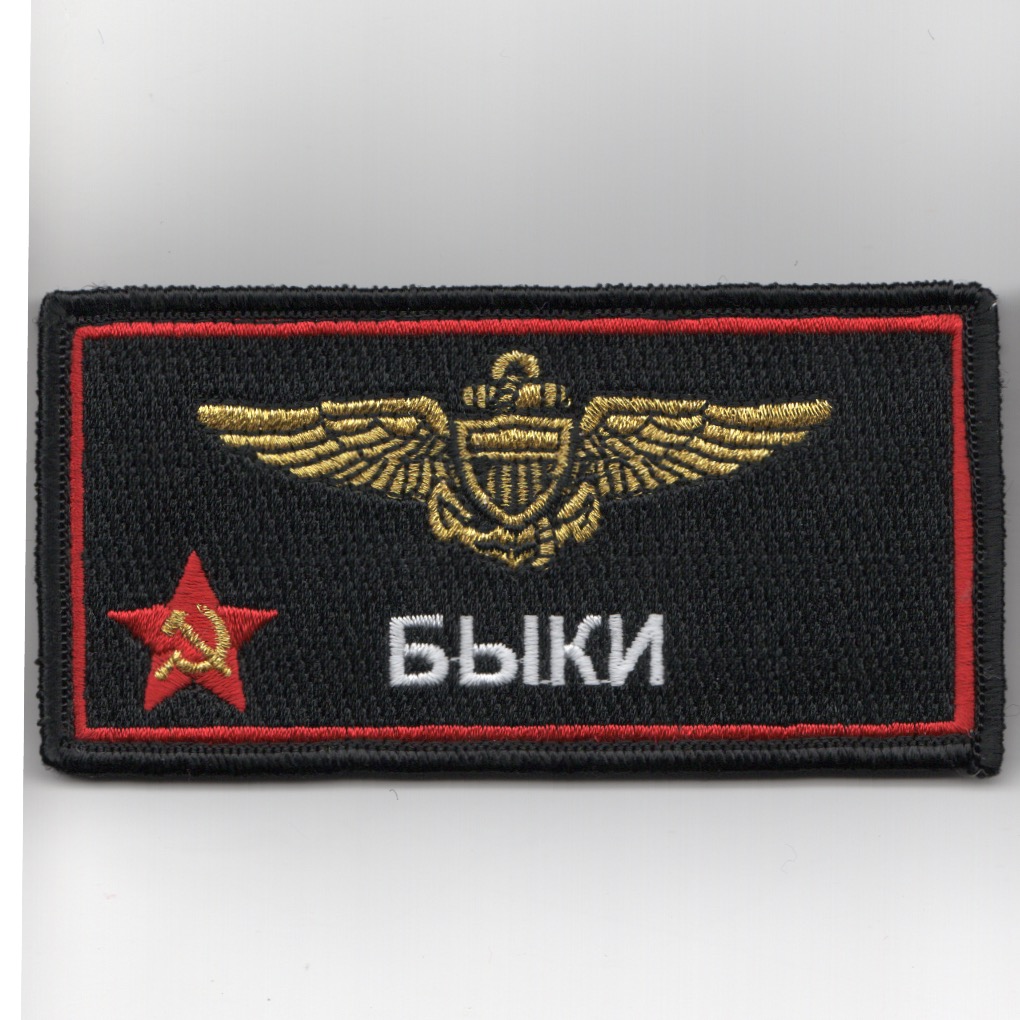(Another AV8RSTUFF Creation): This is the ‘RED AIR’ version of the nametag that says GGIKN (which is Cyrillic for BULLS) for the pilots of VFA-37. This patch already has velcro attached.