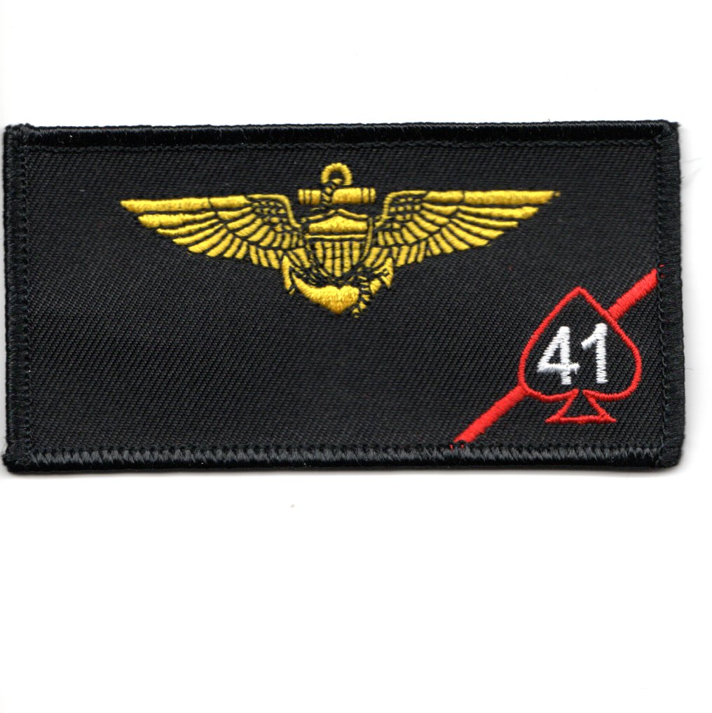 This is the black version (with a black border) of the pilot nametag without the F-18 Hornet for the VFA-41 BLACK ACES. It does not come with velcro so that you can have it embroidered.