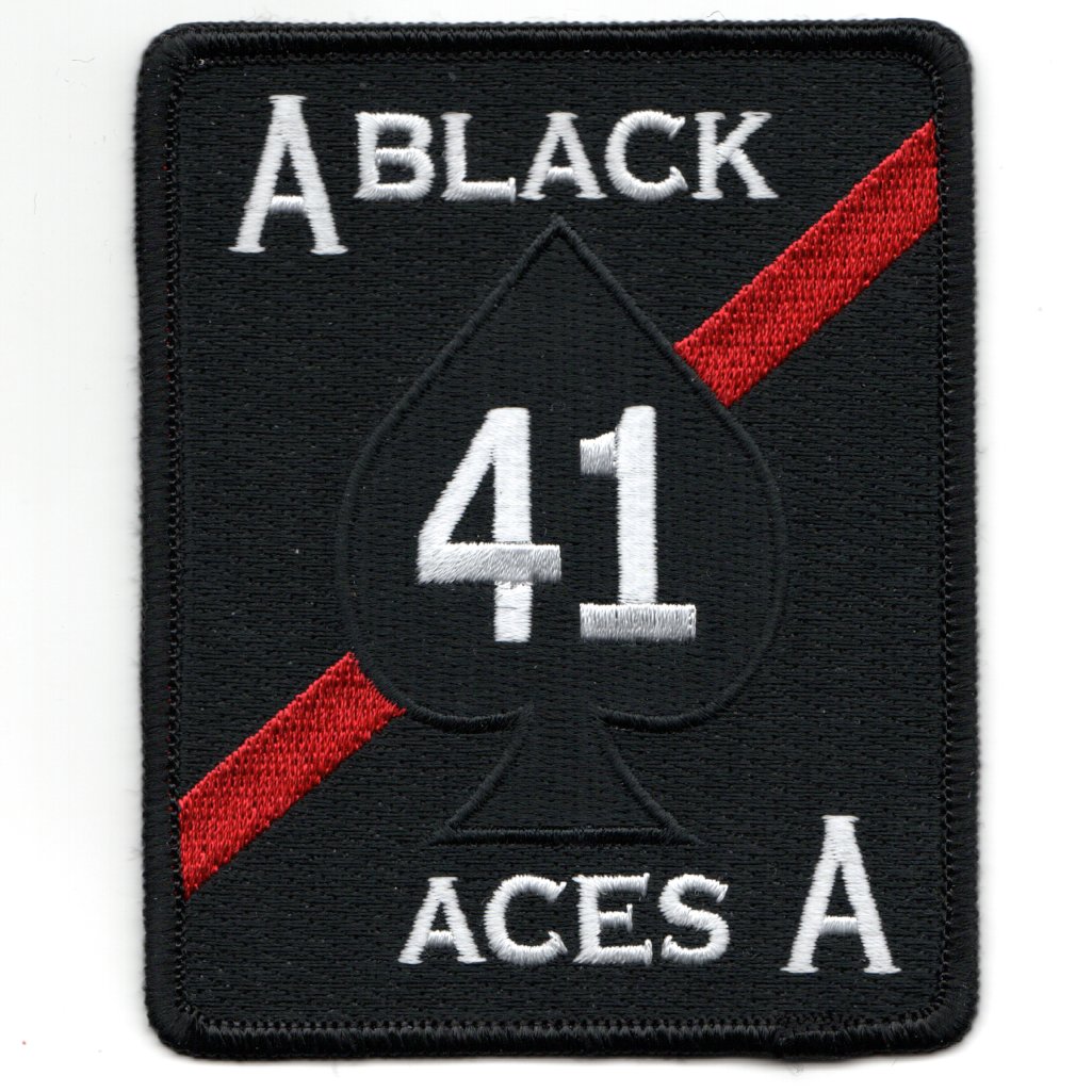 The “Black Aces” of VFA-41 operated the F-18 out of NAS Oceana, VA. Callsign “Fast Eagle”, they were established in September 1950 and transitioned from the F-4Ns in April 1976 to their current platform. In August 1981, the Black Aces downed 2 Su-22 “Fitter” fighters after being attacked during an exercise. They participated in several exercises and flew from the decks of several carriers. They also shifted to the USS Lincoln (CVN-72) for ‘cleanup’ operations at the end of Desert Storm. This is the BLACK version of their squadron patch.