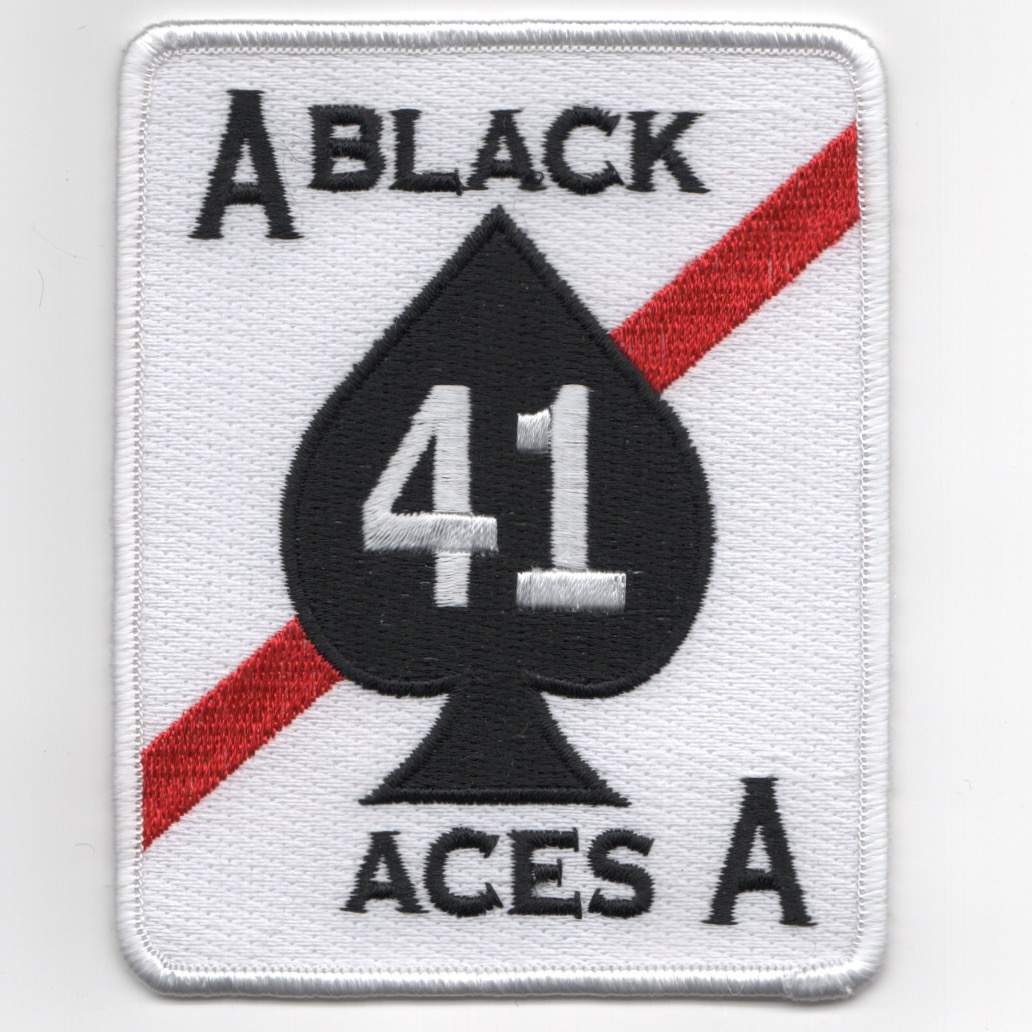 The “Black Aces” of VFA-41 now operate the F/A-18F out of NAS Lemoore, CA. Callsign “Fast Eagle”, they were established in September 1950 and transitioned from the F-4Ns in April 1976 to their current platform. In August 1981, the Black Aces downed 2 Su-22 “Fitter” fighters after being attacked during an exercise. They participated in several exercises and flew from the decks of several carriers. They also shifted to the USS Lincoln (CVN-72) for ‘cleanup’ operations at the end of Desert Storm. This is the color version of their squadron patch and does not come wioth velcro attached.