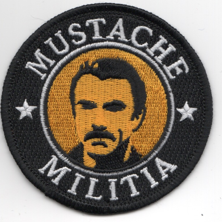 This patch comes from VFA-81. The story goes that Robin Olds (one of the greatest USAF fighter pilots from the Vietnam era) always had a full, thick mustache. Most aviators (USN and USAF) now will grow a mustache in March in memoriam to him. This patch does not come with velcro attached.