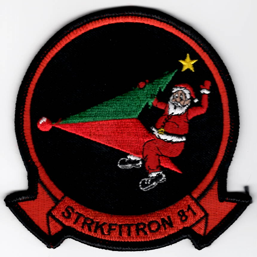 Strike Fighter Squadron 81 (VFA-81), also known as the “Sunliners”, is a USN F/A-18E Super Hornet StrikeFighter squadron stationed at NAS Oceana. They are currently assigned to Carrier Air Wing ONE (CVW-1). Their mission is to conduct prompt and sustained combat operations from the sea. The squadron was originally designated VA-66 on 1 July 1955, was redesignated VF-81 the same day, redesignated VA-81 on 1 July 1959, and finally redesignated VFA-81 on 4 February 1988. This is the black version of their *SANTA ON CHEVRON* Christmas patch and does not come with velcro attached