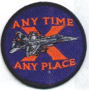 The ‘Sunliners’ of VFA-81 operate the F/A-18C out of NAS Oceana, VA after having moved up from NAS Cecil Field, FL. They originally operated the A-7 Corsair until transitioning to the Hornet in February 1988. This is their “rebuttal” patch to the Tomcat’s Motto patch and also says “ANYTIME, ANYWHERE”.