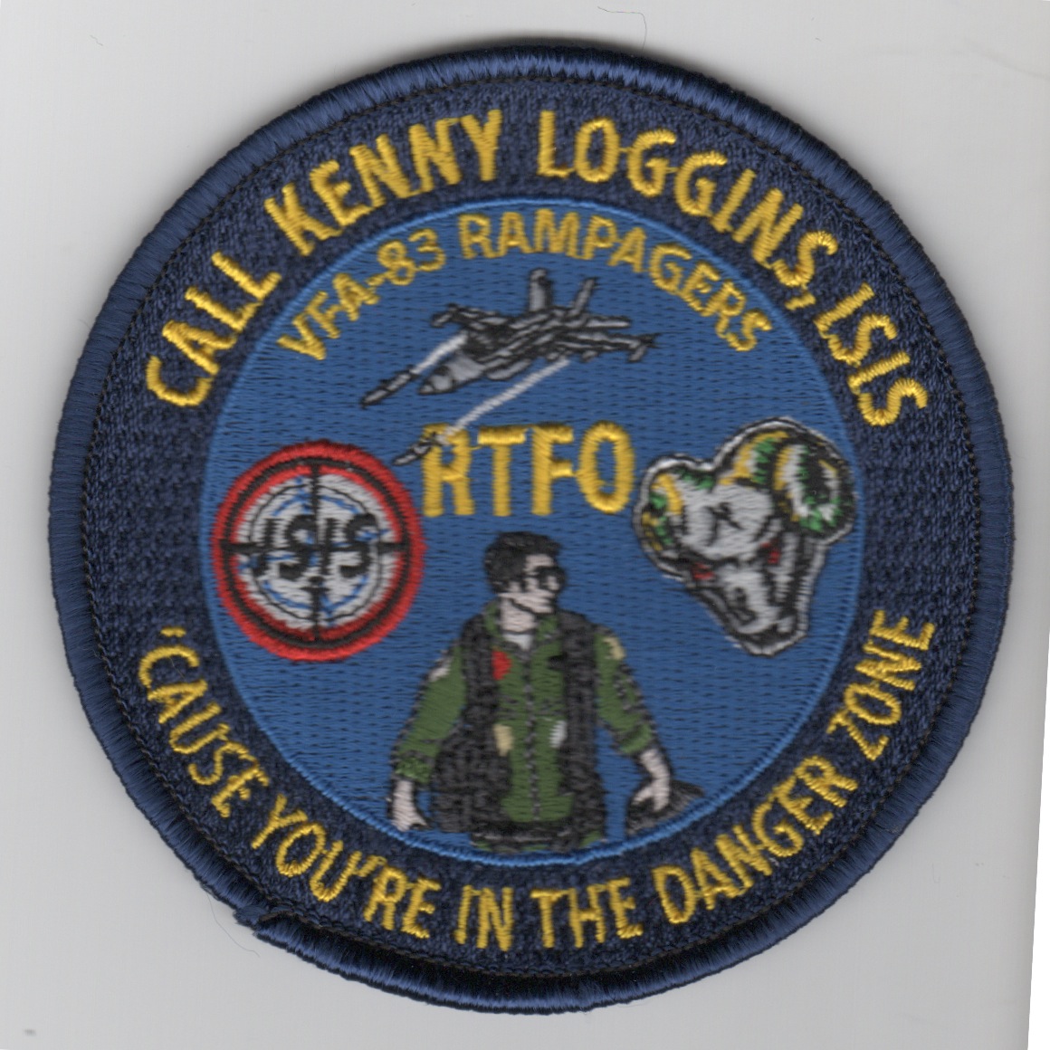 This is one of the cruise patches created by the Rampagers. It says “Call Kenny Loggins, ISIS” (top), and “Cause You’re In The Danger Zone” (bottom). This is obviously a dig at the Tomcat community, as it shows “Tom Cruise” at the bottom of the patch. This patch does not come with velcro attached.