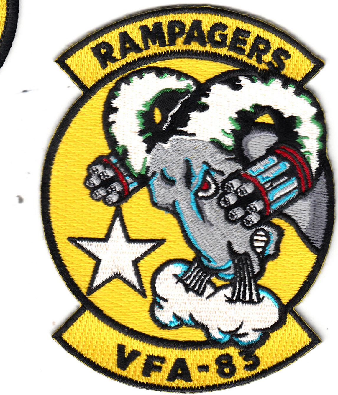 Strike Fighter Squadron 83 (VFA-83), also known as the “Rampagers”, are a United States Navy F/A-18C Hornet fighter squadron stationed at NAS Oceana and are a part of Carrier Air Wing 7. In mid-1990 they made their first Hornet deployment aboard the USS Saratoga in support of Operation Desert Shield and Operation Desert Storm. For 43 days they flew 237 combat missions over Iraq and Kuwait and continue the fight to this day. This is the new, yellow version of their squadron patch and does not come with velcro attached.