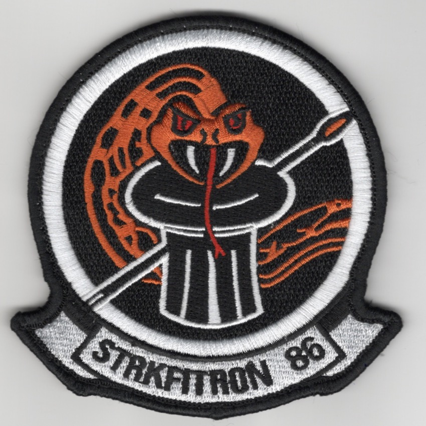 Attack Squadron EIGHT SIX (VA-86) traces its origins to Fighter Squadron 921, based at NAS St. Louis, MO, during the Korean War in February 1951. In February 1953, the squadron was re-designated VF-84 while deployed to Guantanamo Bay, Cuba, aboard USS ANTIETAM (CV 36). In July 1955, the squadron was re-designated VA-86 Sidewinders. From 1955 to 1987, Sidewinders flew the F4-U “Corsair,” F8F-2 “Bearcat,” F9F-5 “Panther,” F7U-3M “Cutlass,” also known as the “Ensign Eater,” A4D-1 “Skyhawk” and A-7A/C/E “Corsair.” After the A-7, the squadron was transitioned to the F/A-18 Hornet, then assigned to their current aircraft, the F-35C Lightning II. This is the black-bordered, 1-tab version of their squadron patch and does come with velcro attached.